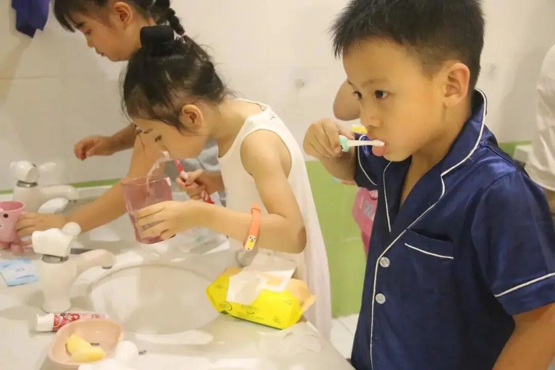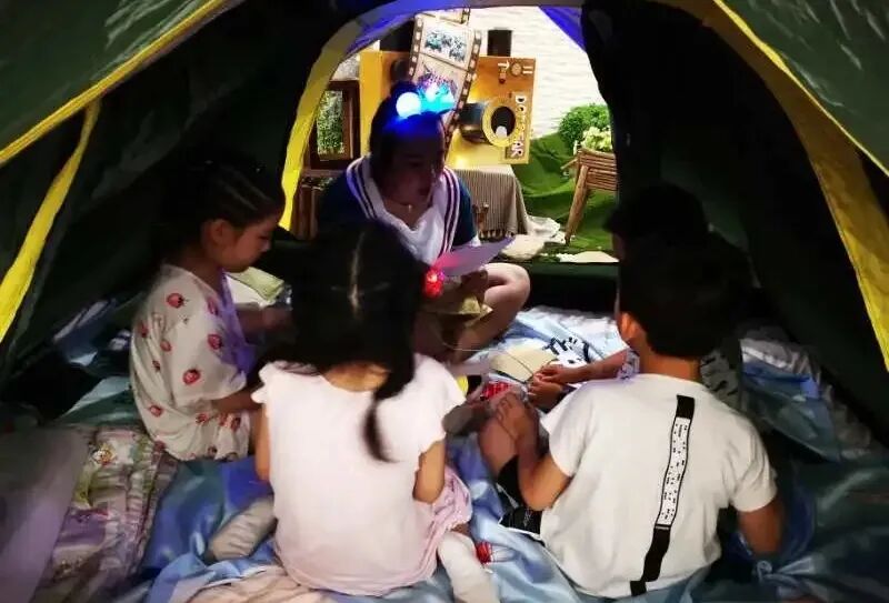 宝贝们学着在黑夜中探索,寻找宝藏;学着自己洗漱、收拾床铺。当然离不开老师的陪伴,在晚上也能听老师讲故事,多么幸福呀!