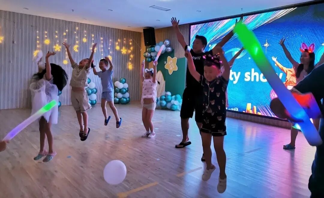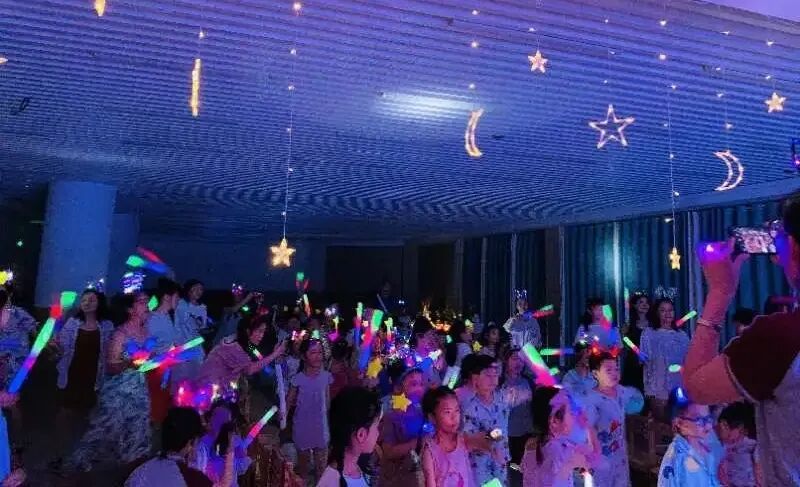在这样的夜晚,宝贝们以草地为席,夏风为被,有星光作伴,一起嗨歌、斗舞,观看露天电影,分享爸爸妈妈送来的祝福……勇士的能量越来越强,成长不停歇。
